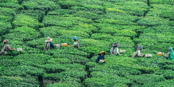 Tea picker in tea plantation in field
